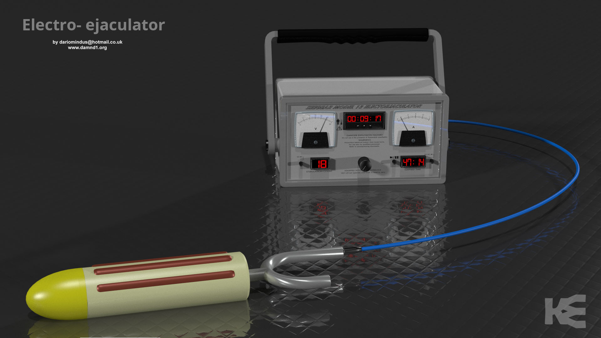 Wade felt a tingling in his asshole. The head of the ejaculator was pressing lightly against his prostate. Even without a current, it was already a mildly pleasurable experience, despite his embarrassment, but the current made it feel considerably better.